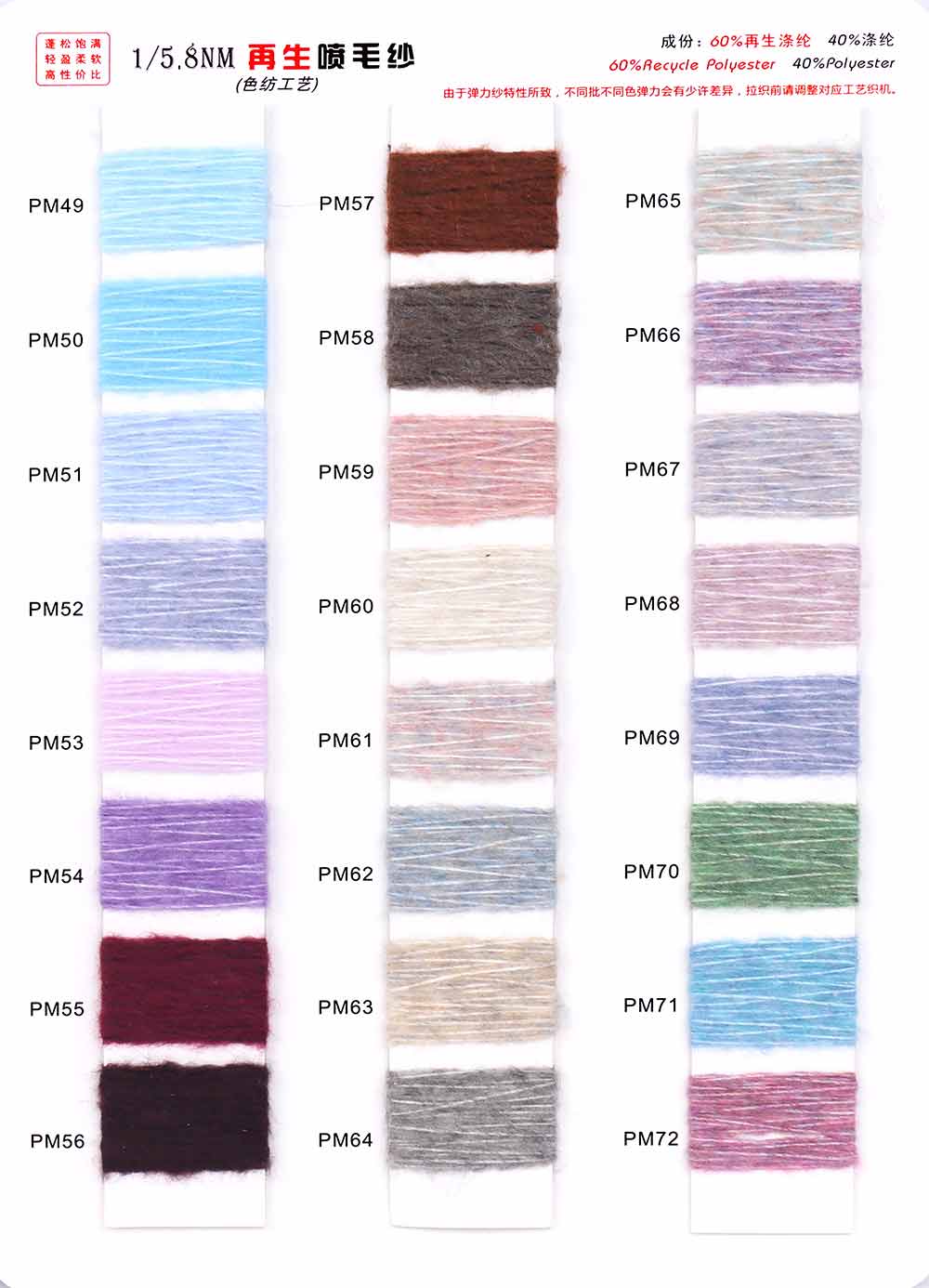 Name:1/5.8NM 再生喷毛纱 72