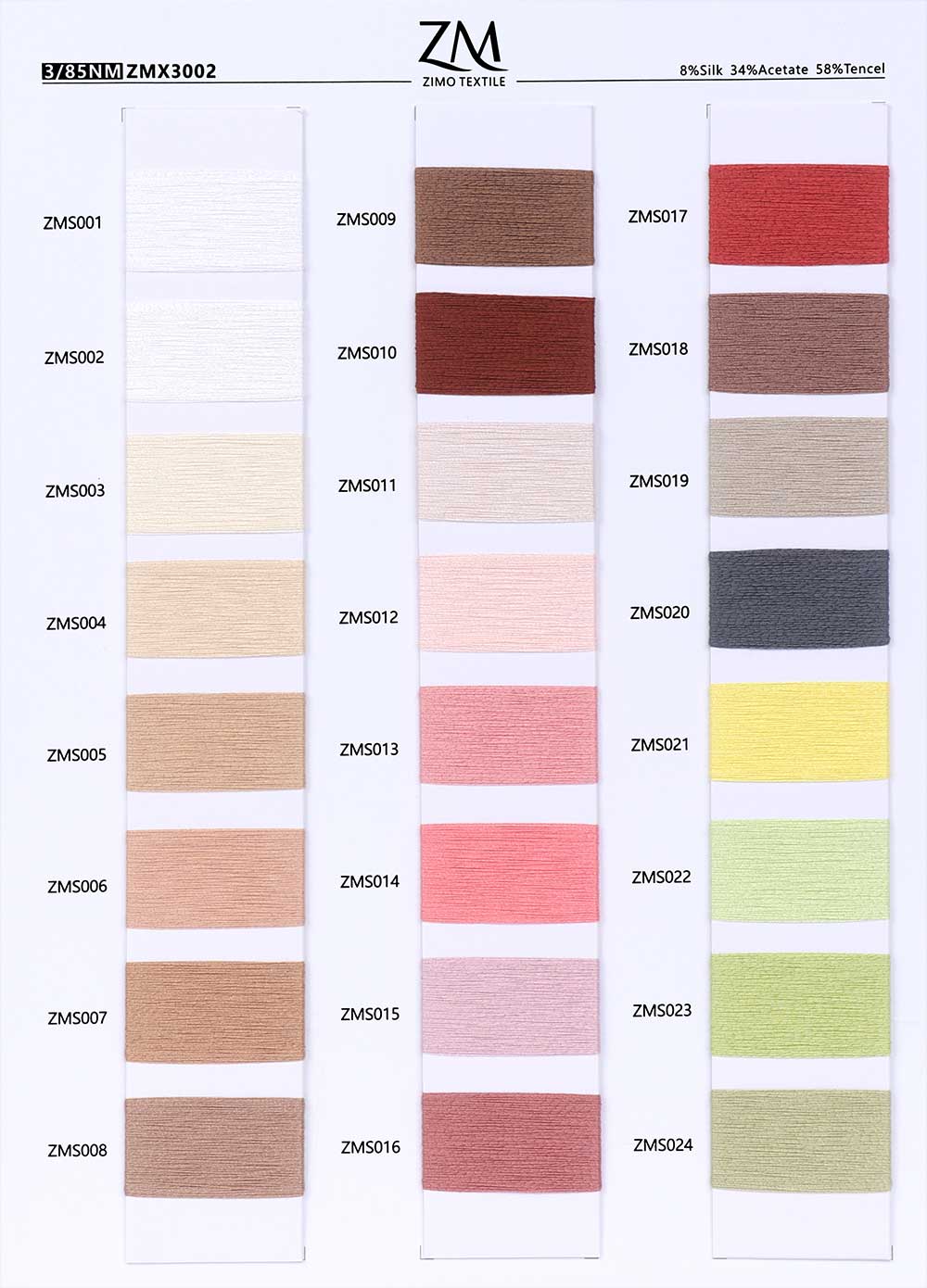 8%蚕丝Silk 34%醋酸丝Acetate 58%天丝Tencel