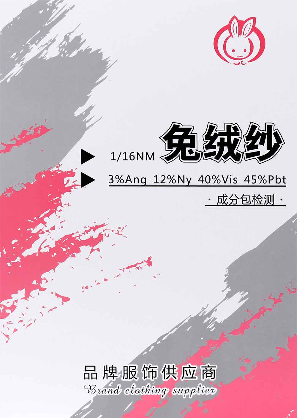 3%兔绒Angola 12%尼龙Nylon 40%粘胶Viscose 45%涤纶Polyester